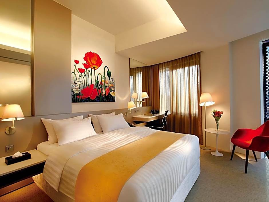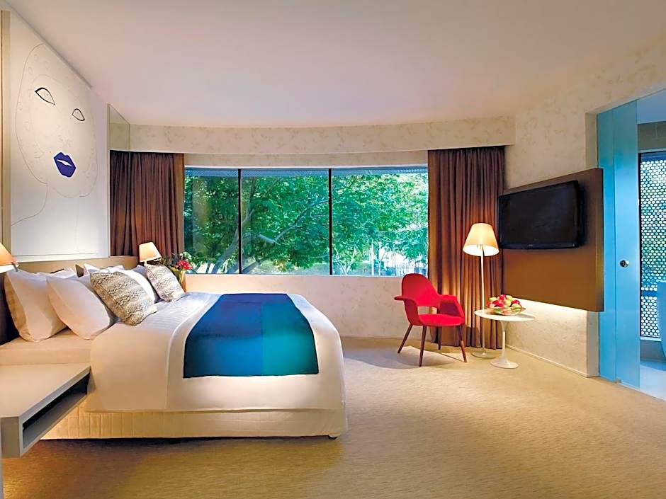 Amid Tiong Bahru accommodations, Deluxe King rooms ranges from 26 to 27 sqm and embellished with bright spots of color, the Deluxe King is a comfortably-sized room with city views and a 37-inch flat-screen TV.